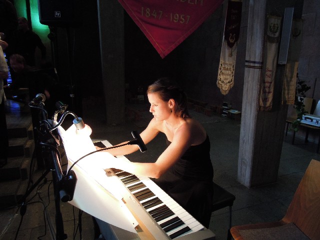 Selbstverständlich durfte auch großzügiger Blumenschmuck seitlich im Altarraum nicht fehlen, sowie die liebevoll arrangierten, kleinen Blumengestecke auf den Tischen im Gemeindehaus. Bild und Ton wurde durch alle verfügbaren technischen Mittel eingefangen, damit wir uns an den Erinnerungen erfreuen können. So waren Fotografen, Kameramänner, Licht- und Tontechniker in hurtigem Einsatz. Bei der Dekoration und Technik waren viele Vereinsmitglieder wie Günter Kutterer, Beate Wenz, Martina Vlasic, Dieter Stähle, Robin und Matthias Engel fleißig am Werk.