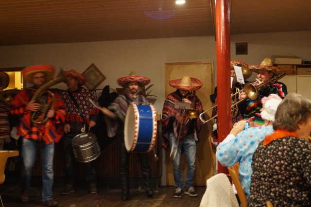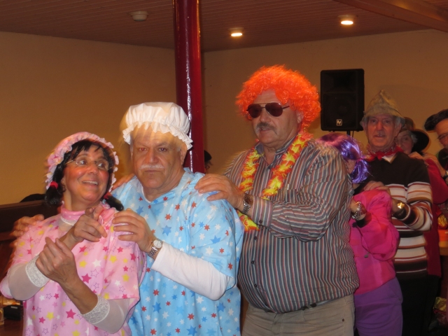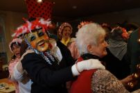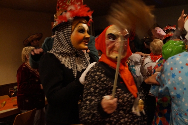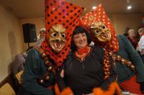 Am 4. Februar dem "schmutzigen Donnerstag" fand wie jedes Jahr im Gasthaus Sonne unsere närrische Singstunde statt. Bald nach Beginn unserer Veranstaltung kam auch schon die erste "Daxlander Schlampe" vorbei. Wir alle wurden mit ihrem Staubwedel entstaubt, bevor sie leckere selbstgebackene Fastnachtsküchle austeilte. Wie sich später herausstellte, war es unsere Gisela, die Überraschung war ihr gelungen. Wolfgang Thiedemann unterhielt uns bestens mit guter Musik und einem Musical-Rätsel. Bald kamen die Daxlander Schlampen in großer Zahl zu uns. Elsbeth Stober, zum ersten mal in unserer Runde dabei, gab eine ihrer Büttenreden zum Besten, da blieb kein Auge trocken. Zuletzt kamen noch die Narrenzunft Daxlanden und die Dampfmusik vorbei und heizten uns kräftig ein. Spät ging ein gelungener, unterhaltsamer Abend mit Tanz und Gesang zu ende.