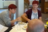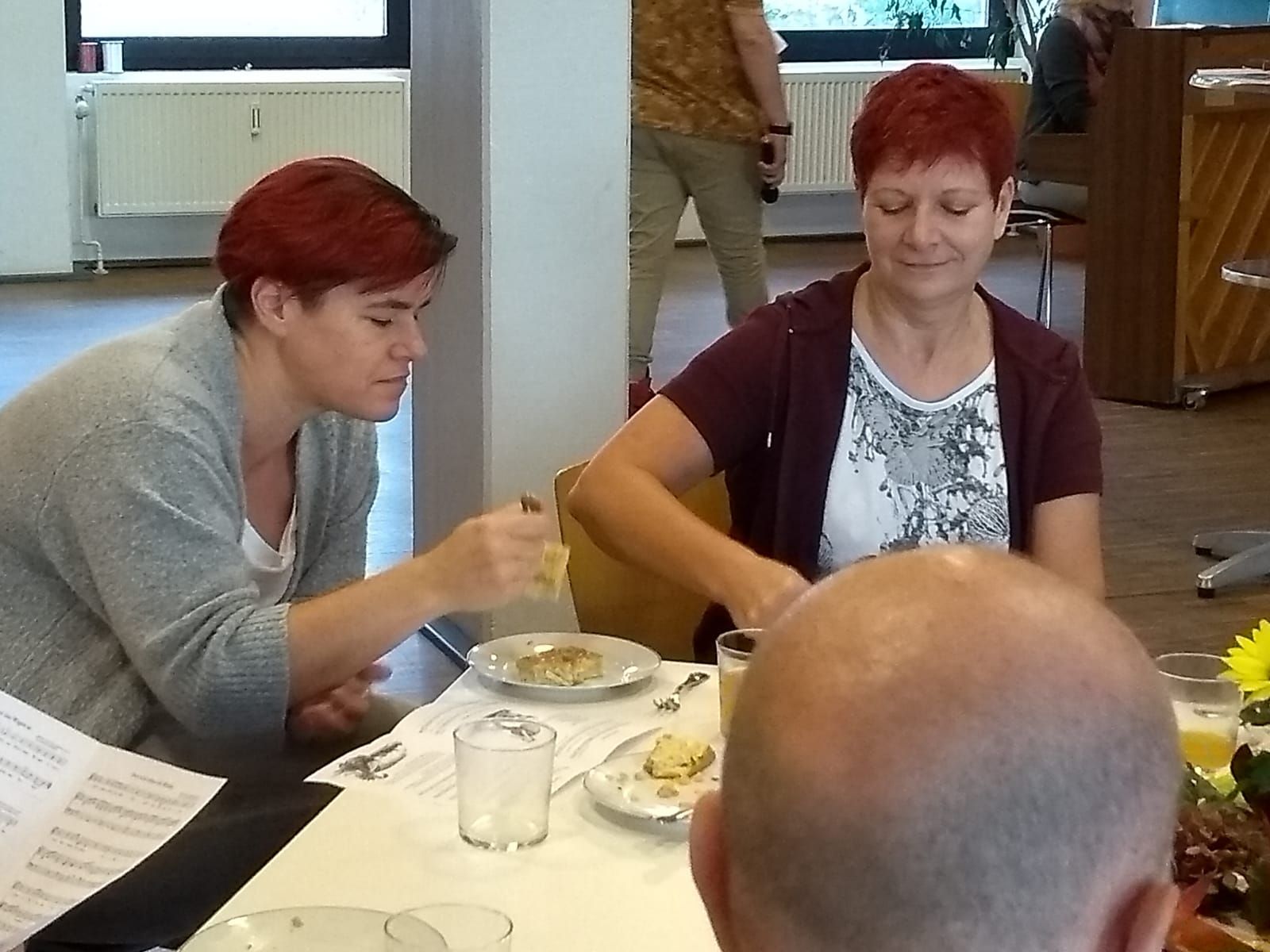 Zur Klavierbegleitung von Susanne Stather wurden einige Lieder gesungen. Man führte unterhaltsame Gespräche, und die neue Chorleiterin der Modern Voices, Petra Föhr-Floreani, hatte Gelegenheit, ihre Schützlinge etwas näher kennenzulernen.