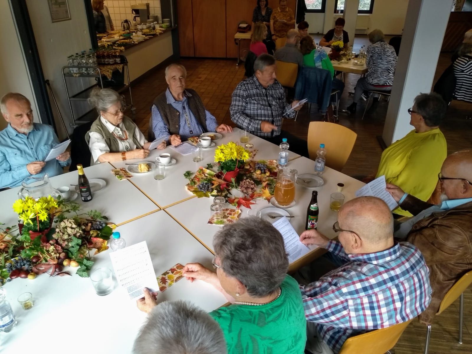 Das Zwiebelkuchenfest vom Liederkranz Daxlanden fand am 20.10.2019 im Proberaum der Modern Voices im Christophorus-Haus statt. Fleißige Helferinnen hatten zuvor die Tische - passend zur Jahreszeit - herbstlich dekoriert und alles vorbereitet, um für das leibliche Wohl der Gäste zu sorgen.